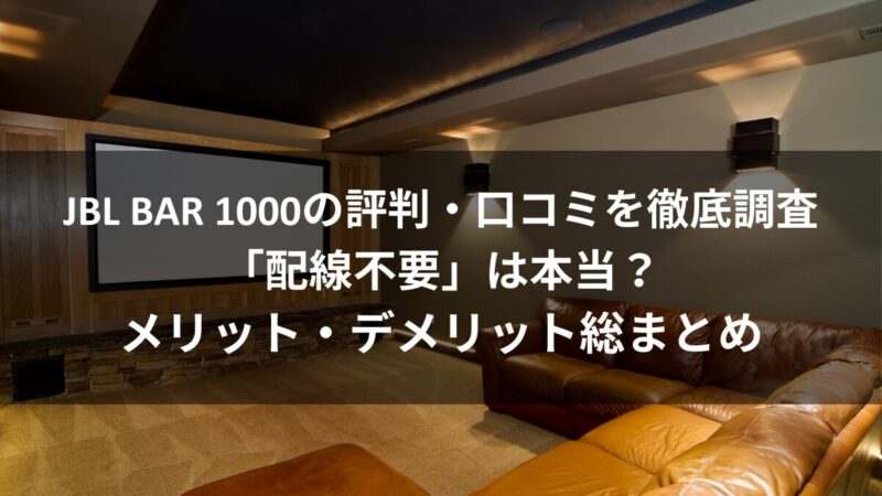 JBL BAR 1000の評判・口コミを徹底調査。「配線不要」は本当か?完全ワイヤレスリアスピーカーのメリット・デメリットを総まとめ。SONYやBoseとの比較や、充電の手間など購入前に知っておきたいリアルな評価も解説します。