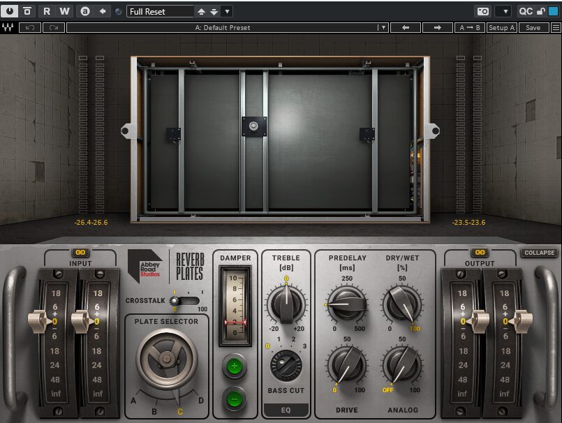 - 全体の空気感(Abbey Road Plates): スネア、タム、シンバルを Abbey Road Reverb Plates(センド)へ送ります。プレート特有の重厚さがドラムセットの一体感を生みます。