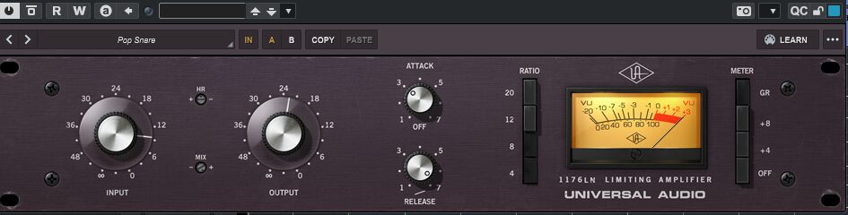 - 主役のスネア(Lexicon / Neoverb): スネア単体には、シンセと同じ Lexicon(UAD Lexicon 224) をセンドで使用。シンセと同じデジタル空間を共有させるのが当時の質感を出す裏技です。