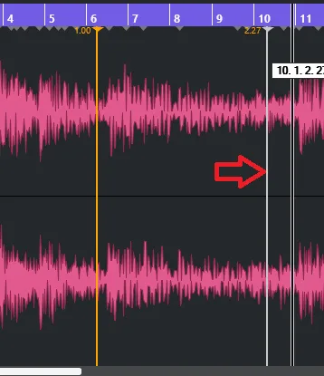 ワープマーカーは、オーディオ素材の特定の位置を固定し、その周辺のタイミングを調整するための目印として機能します。これにより、録音した音源のタイミング補正や、プロジェクトのテンポに合わせたオーディオの同期が容易になります。