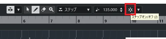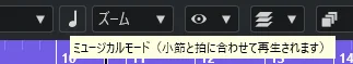 サンプルエディター画面の上中央にある、「♪」ミュージカルモードボタンを確認します。もし上記のオン状態であれば「♪」をクリックしてください。
