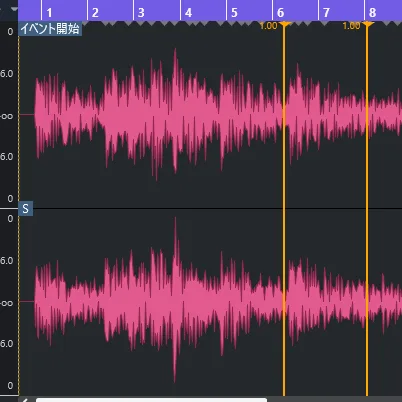 オーディオイベントをクリックしてサンプルエディターを出します。