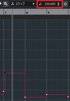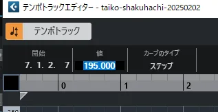 「値」が表示されてない場合には、「テンポトラックエディター」右上のボタンを押してください。