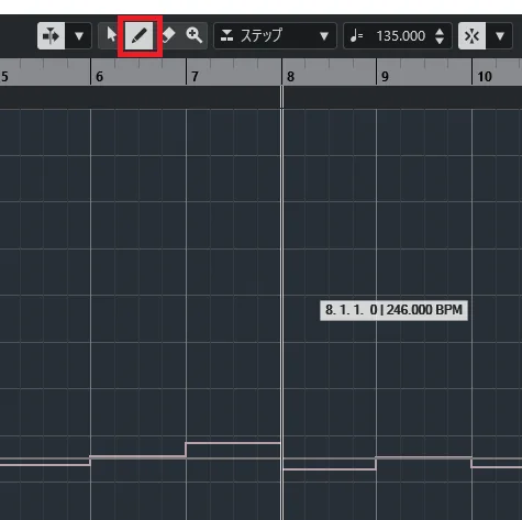 「テンポトラックエディター」内で、鉛筆ツールを使用します。