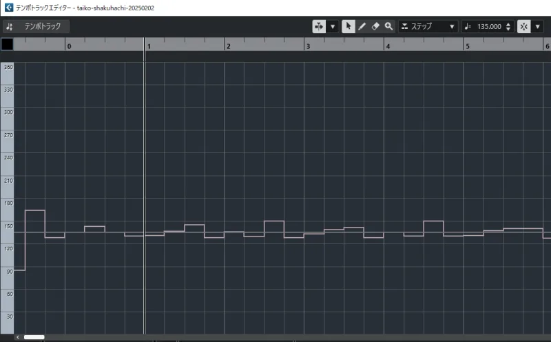 テンポトラックを活用することで、楽曲の自然な揺れを再現したり、リファレンス曲の微妙なテンポ変化を正確に追従することができます。この機能を活用します。