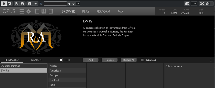 EastWest RAはDoug Rogers・Nick Phoenixがプロデュースした、世界各地の民族楽器を収録したサンプルライブラリです。収録容量は約14〜20GBで、以下の6カテゴリーに分類されています。