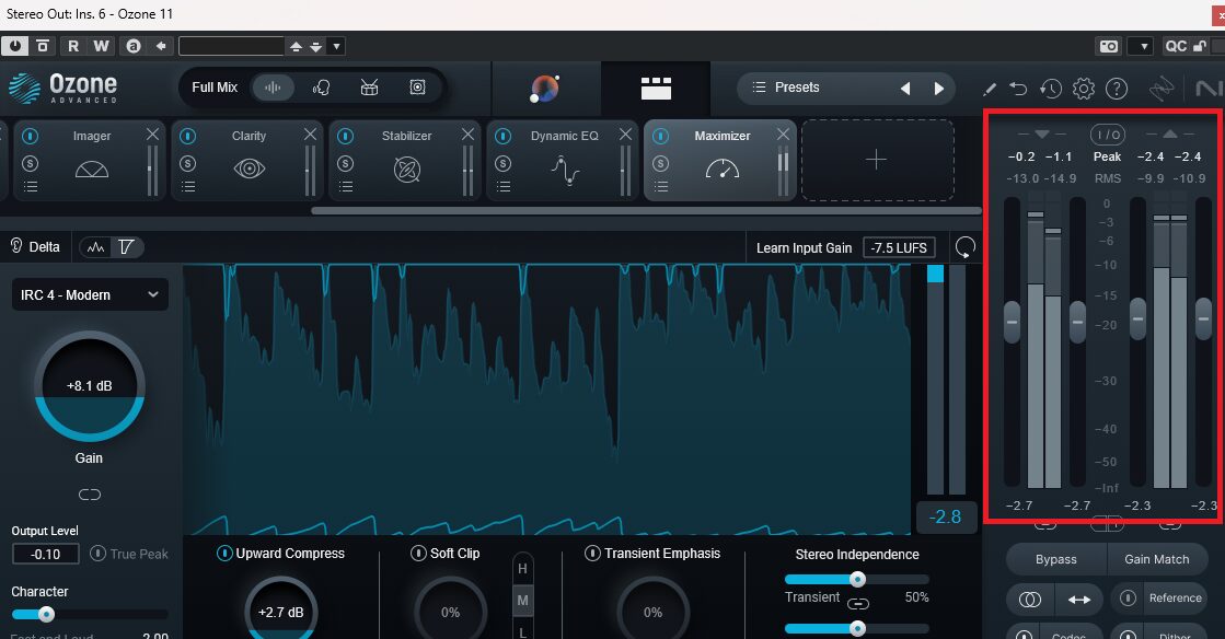 - ミックスレベルの管理: マスタリング工程に入る前に、ミックスの最終的な出力レベルが適切に調整され、Ozoneでの作業に必要なヘッドルームが確保されていることを確認する必要があります。