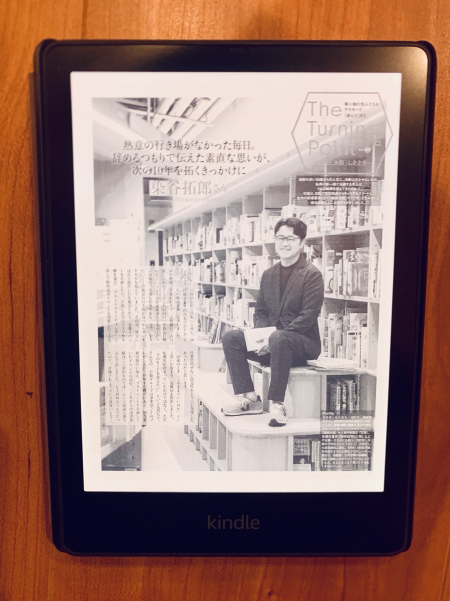 この写真を見てわかる通り、Paperwhiteのモノクロ表示は「白黒だから読みにくい」ということはありません。むしろ300ppiという高精細度のおかげで、文字のエッジがくっきりしています。