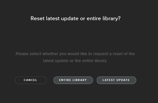 - 「Reset」をクリックし、「Entire Library」(またはLatest Updateなど)を選択。
