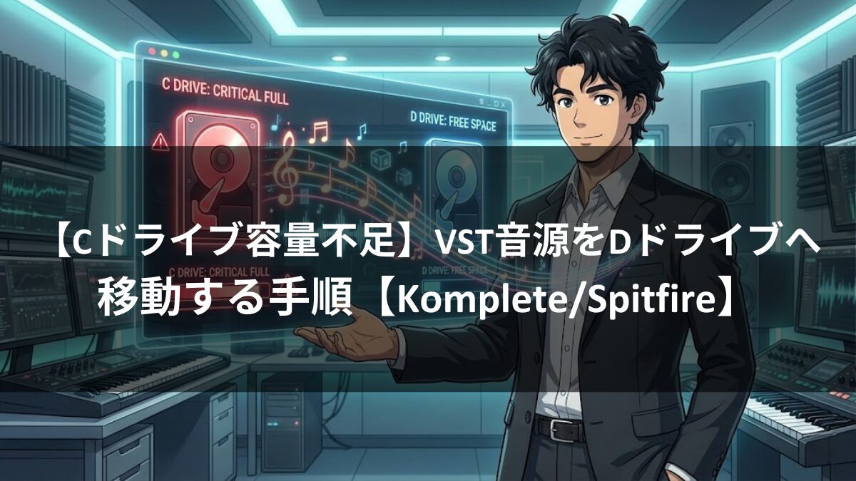 【Cドライブ容量不足】VST音源をDドライブへ移動する手順【Komplete/Spitfire】