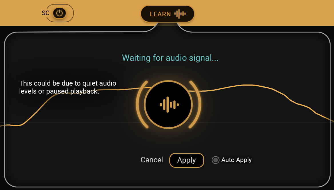 「LEARN」ボタンを押してソースを再生すると、その素材(ボーカル、ギター、ドラムなど)固有の共鳴ポイントを学習し、その音専用の抑制カーブを生成します。